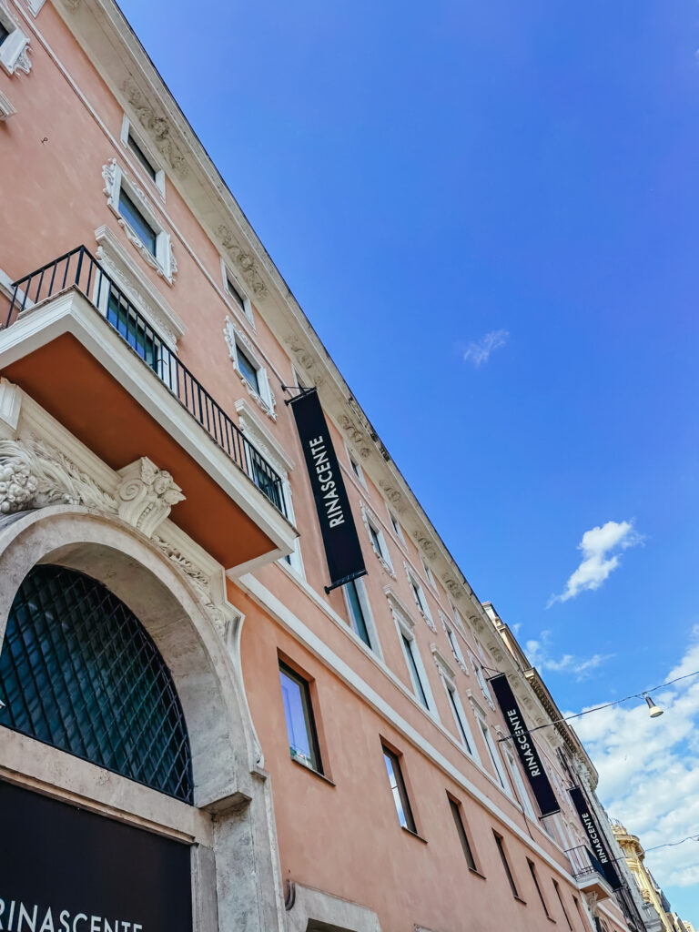 Rinascente heter detta områdes ikoniska varuhus. Möjligen kan det jämföra sig med Stockholms NK, men ikoniskt vackert på samma sätt som Paris LaFayette är det långt ifrån. Ett stycke takbar finnes, förstås.