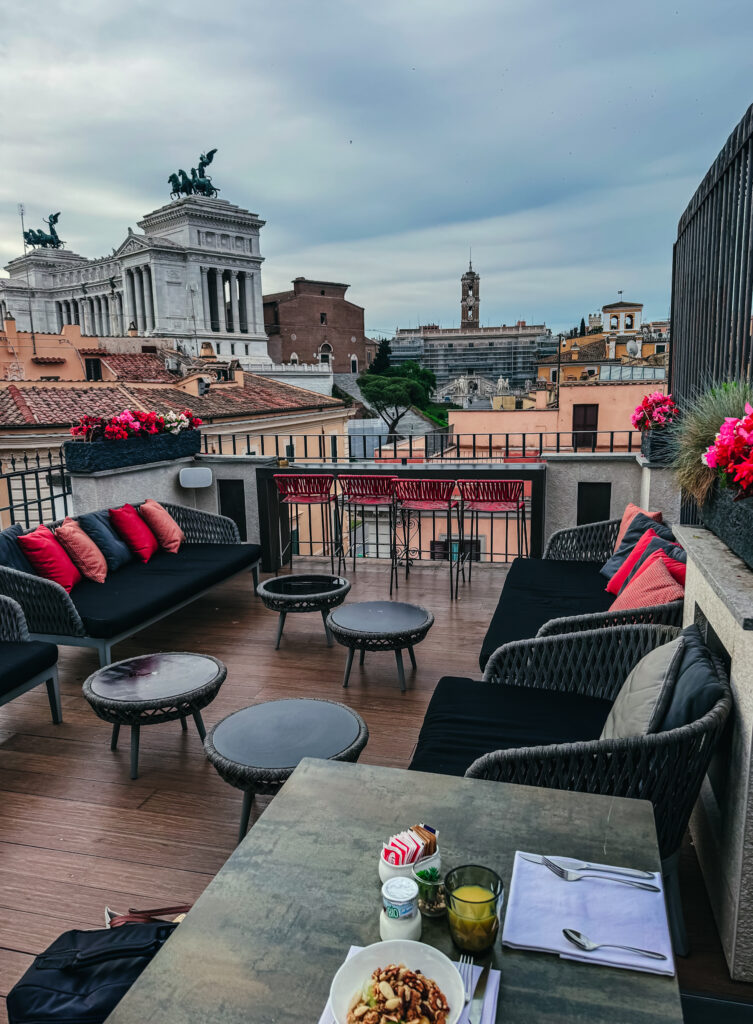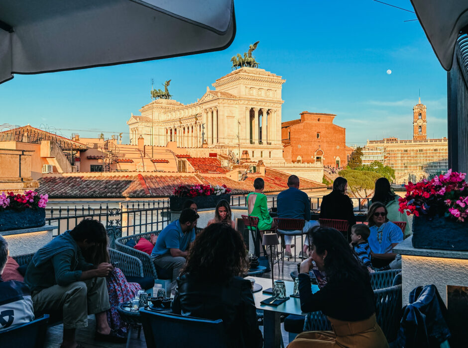 Att pausa på en takterrass är ett bra tips i vilken storstad som helst, och inte minst i en som Rom där livet på gatorna är så intensivt och människopackat. Det är guld värt att komma upp lite, se de fina takåsarna och siluetterna från stadens ikoniska byggnader och få en paus – och det behövs absolut inte en värsting rooftop för att det ska upplevas riktigt bra.
